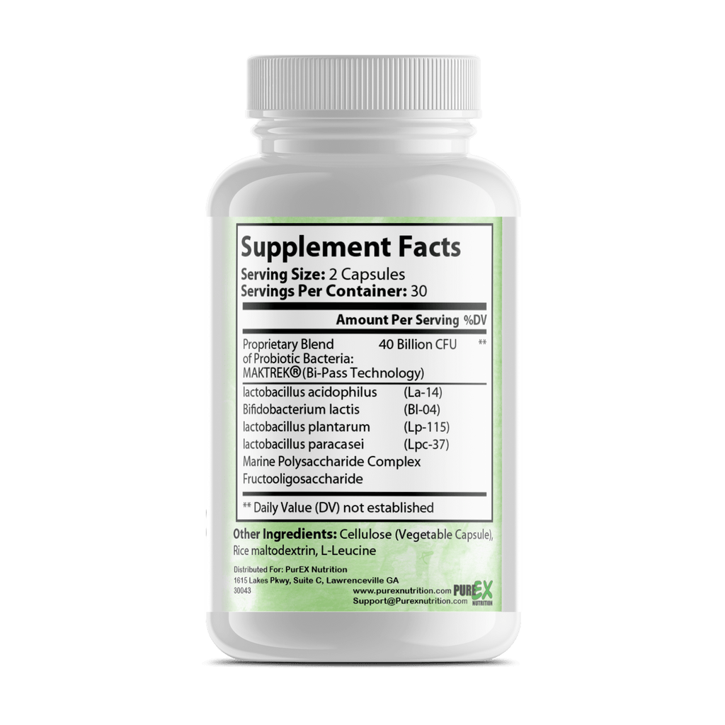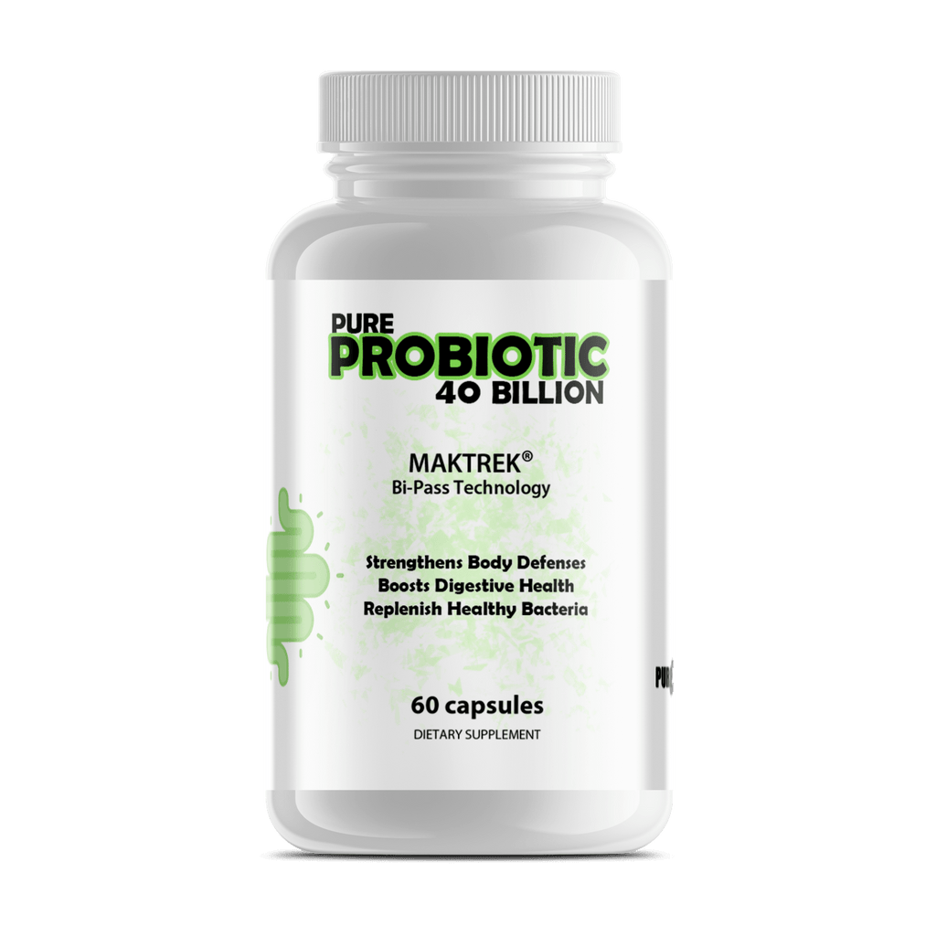 Pure Probiotics contain 40 billion units of colony forming units (CFU) to help improve or balance your microbiota. With MAKTrek® Bi-Pass Technology Pure Probiotics is formulated for a higher level of absorption. MAKTrek® Bi-Pass Technology is a patented formula that helps to improve the absorption of probiotics specifically within the body. MAKTrek® works by protecting the capsule with a protective layer keeping it safe in the stomach. This is so that it isnt broken down early by digestive enzymes in the stomach or intestines.