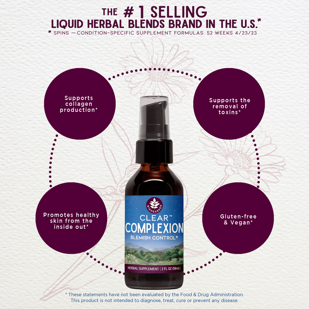 Healthy, radiant skin starts from the inside out! If your detoxification channels are backed up, your skin becomes the next best route for toxins to leave the body. Bust those blemish blues with a little love for your filters – your kidneys, liver and skin. Clear Complexion supports skin hydration, firmness, and cell turnover for bright, clear, luminous skin. This can be ingested daily as a tonic or applied topically.