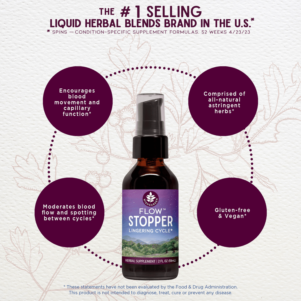 The toning actions of the herbs found in Flow Stopper Lingering Cycle (formerly named Wombstringe for Women) support a woman’s body in moderating blood flow and spotting between cycles. This formula contains some of the best astringent herbs, helping to promote healthy bleeding and promotes your body’s natural ability to keep excess bleeding and spotting in check.
