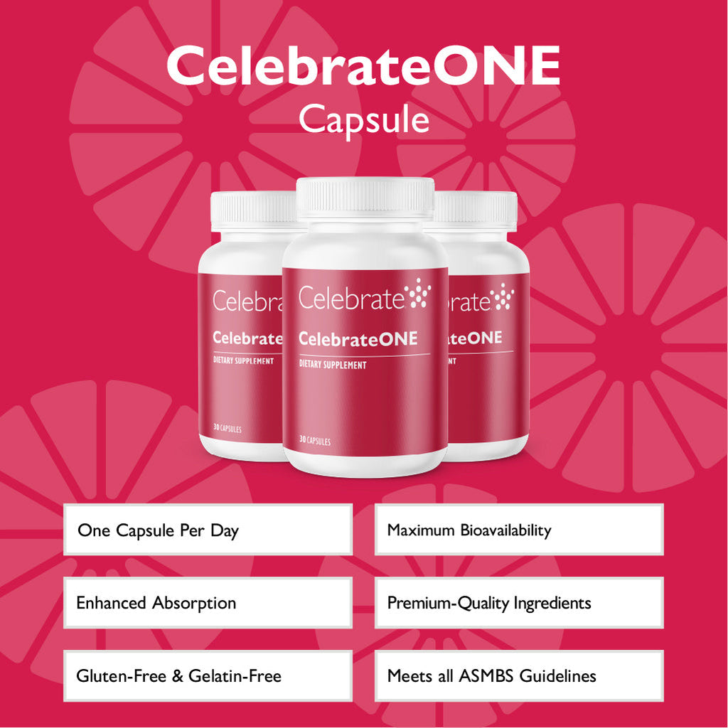 Getting the essential vitamins and minerals your body needs can feel overwhelming after bariatric surgery. CelebrateOne bariatric one a day multivitamin simplifies your routine with a complete, iron-free bariatric multivitamin packed into a single, easy-to-swallow capsule.