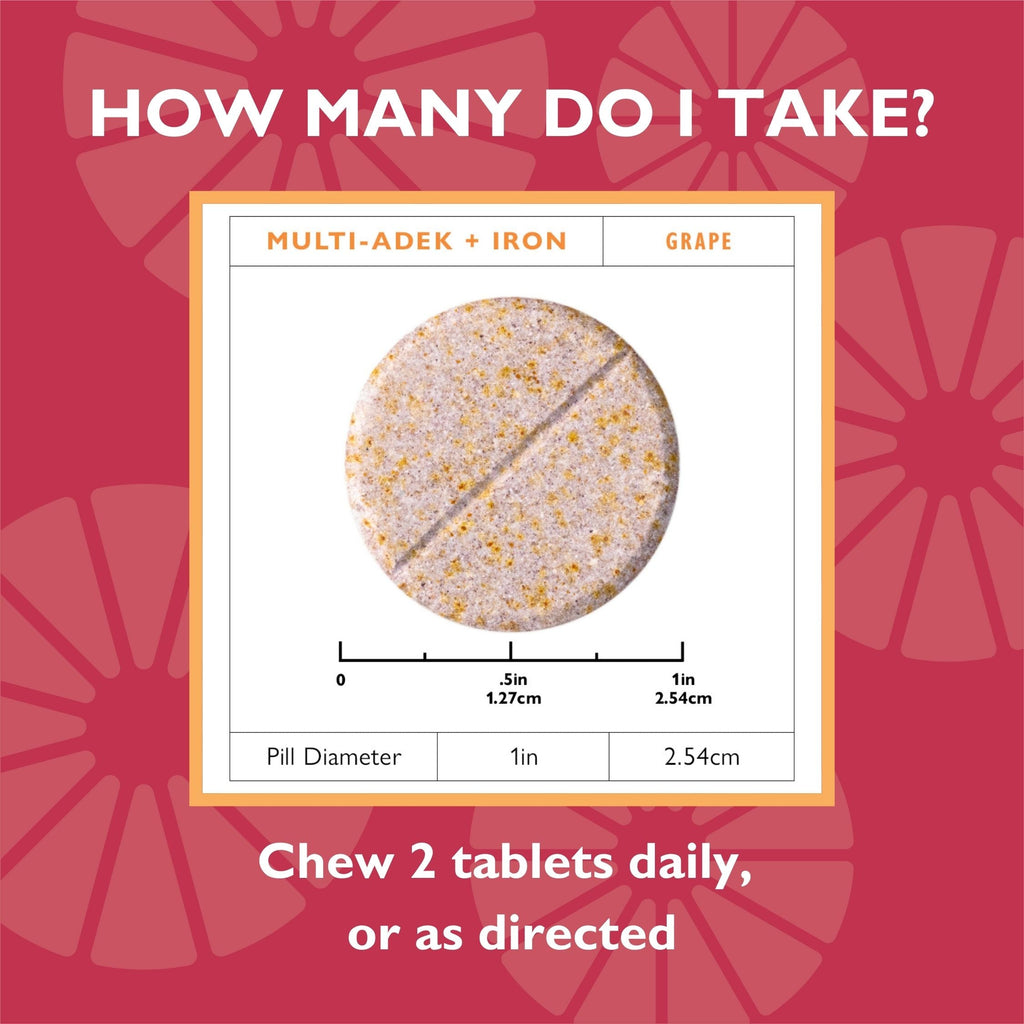Celebrate Multi ADEK vitamins with iron chewable tablets are formulated with the highest levels of vitamin A, vitamin D, vitamin E, and vitamin K. This powerful ADEK multivitamin addresses the unique needs of DS/SADI bariatric surgery patients that require the highest levels of fat soluble vitamins and targeted minerals for optimal recovery after weight loss surgery.